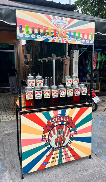 น้ำจรวด สามารถนำไปติดตั้งบนโต๊ะได้ทุกรูปแบบ ไม่ว่าจะเป็น โต๊ะพับ คีออส หรือ ฟรู๊ดทรัค สะดวกมาก สามารถเคลื่อนย้ายได้ตลอดเวลา เพราะเราได้ทำออฟชั่นเสริมตัวฐานจรวดขึ้นมา ทำให้สามารถย้ายได้ตลอดเวลา นี่เป็นเพียงส่วนหนึ่งของ ร้านน้ำจรวด ROCKET ที่เราได้เก็บภาพมากฝาก ร้านน้ำของเรายังมีอีกกว่า 200 ร้านทั่วประเทศไทย